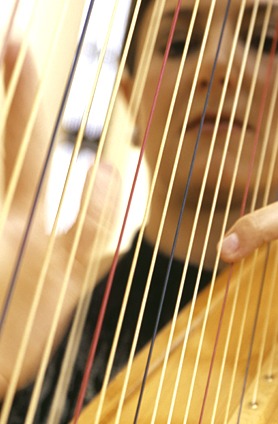 Im Unterschied zur Volksharfe ist die Konzertharfe wesentlich komplexer, da sie einen Doppelpedalmechanismus besitzt, der jede Tonart ermöglicht. Nur kompakte Hölzer wie Ahorn od. Mahagoni halten der Zugbelastung von 1,5 t stand.