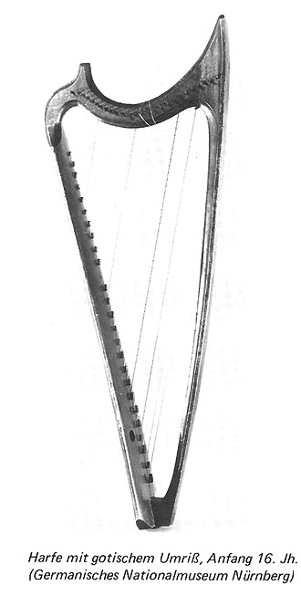 Aus Vorderasien stammend kommt dazu die kleinere Winkelharfe, aus der sich später die Rahmenharfe entwickelt.