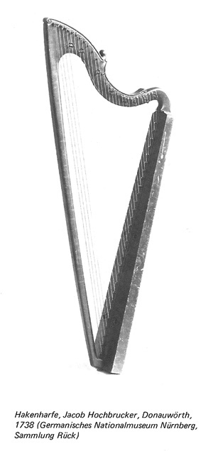 Chromatische Tonhöhenveränderung ermöglicht erst die Tiroler Hakenharfe (2. Hälfte des 17. Jhdt.), bei der mit der Hand drehbare Haken die Saiten verkürzten.